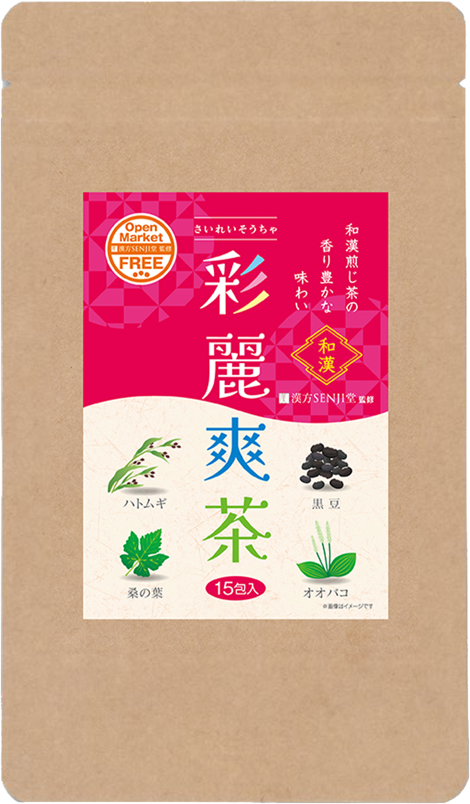 黒豆、乾姜、皮とりはと麦、ヨモギ、オタネニンジン、陳皮、紅花、ヒハツエキス末、甘草、丁子、セイロンシナモンなどを配合したティーパックタイプの健康茶です。香りのよい健康茶で、巡りと冷えが気になる方にお勧めの健康茶です。